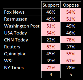 I noticed a couple of things doing this very quick and informal poll polling. How do people subconsciously process a headline that proclaims “49% of Americans Support Healthcare Reform.” In this headline, less than half of the people polled support healthcare, and yet they use the word “support” even though the supporters are in the minority. It may well be the brain locks onto and retains “support healthcare reform” regardless of what the number is in front of it, sort of subtle brainwashing.