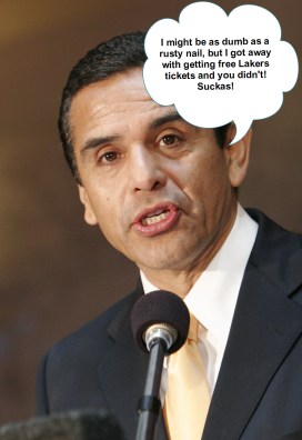 The Mayor of Los Angeles was pressed on how he managed to get free court side NBA Lakers tickets, which he is required to report by law, but failed to do so. After a minute of umming and ahhhing on an audio soundbite on 640KFI, he said they were from the NBA Commissioner and they were meeting to discuss having the 2011 NBA All-Star game brought to Los Angeles next year. Hence, the meeting was for business and not for pleasure.