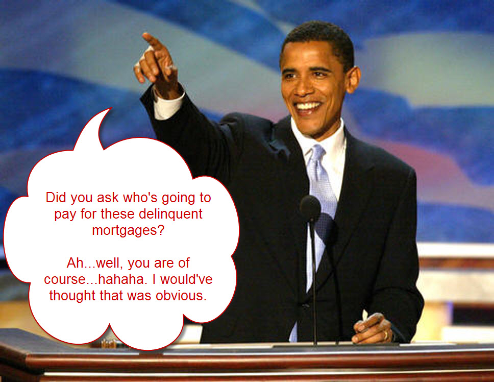 And don’t forget, Obama’s new plan provides taxpayer money for not only the principal and interest, but also your mortgage insurance, taxes and hazard insurance. Combined with your unemployment insurance, your inevitable tax refunds and tax credits, and “tax-free” mortgage payments, you’ll be “earning” a nice chunk of change.