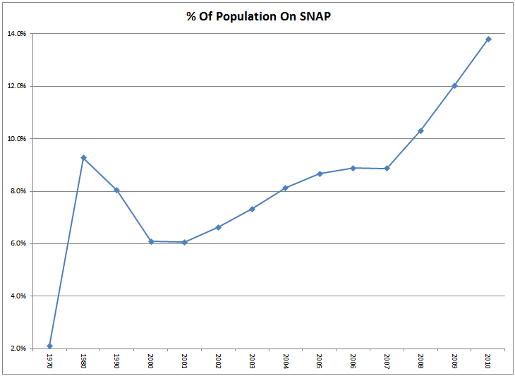 SNAP stands for Supplemental Nutrition Assistance Program. Reader Tim Wallace over on Mish’s Blog provided the charts below.