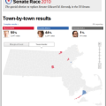 Polls are closed now, as of 8:00pm EST. The numbers are just starting to come in, and Boston.com’s interactive map is back, but this time it’s real-time data feeding it. With only a few locations reporting counts, Brown is ahead…for… Read More ›